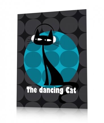 Voilà un chat qui apprécie la bonne musique ! Et sous le feu des projecteurs avec en toile de fond un pattern de motifs vintage, le casque bien enfoncé sur les oreilles, il est la star d'un soir et peut faire son show en espérant qu’il sera récompensé par une ou deux sardines ou quelques morceaux de bœuf balancés par un public reconnaissant.