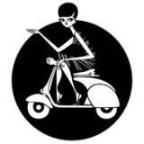 Les cheveux au vent, les lunettes et le tailleur impeccable, cette mod girl sophistiquée file à la vitesse du vent sur sa vespa revival bi-colore pour ne pas se laisser rattraper par ce beau parleur de dandy à lunettes, en vespa lui aussi ! Avanti tutti !